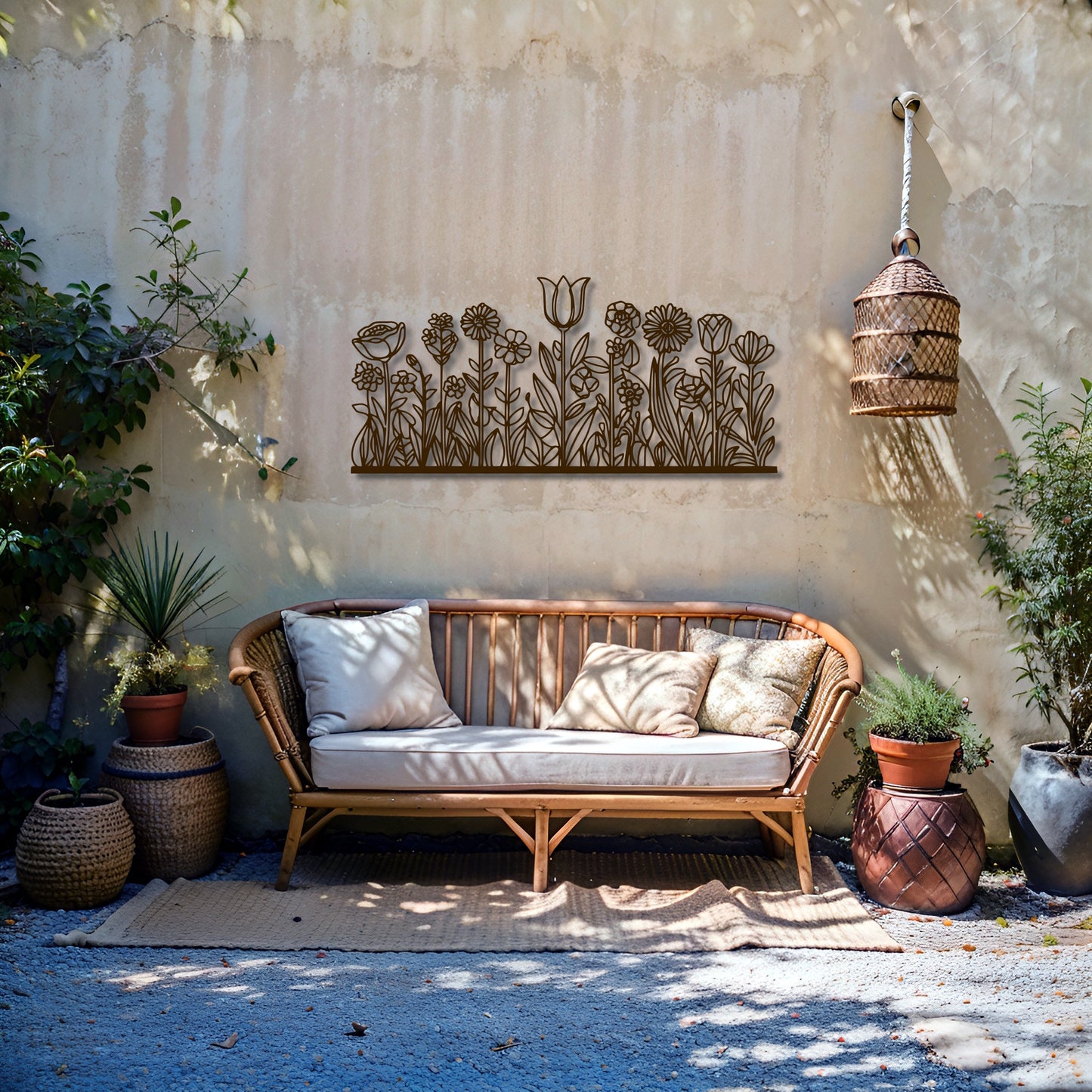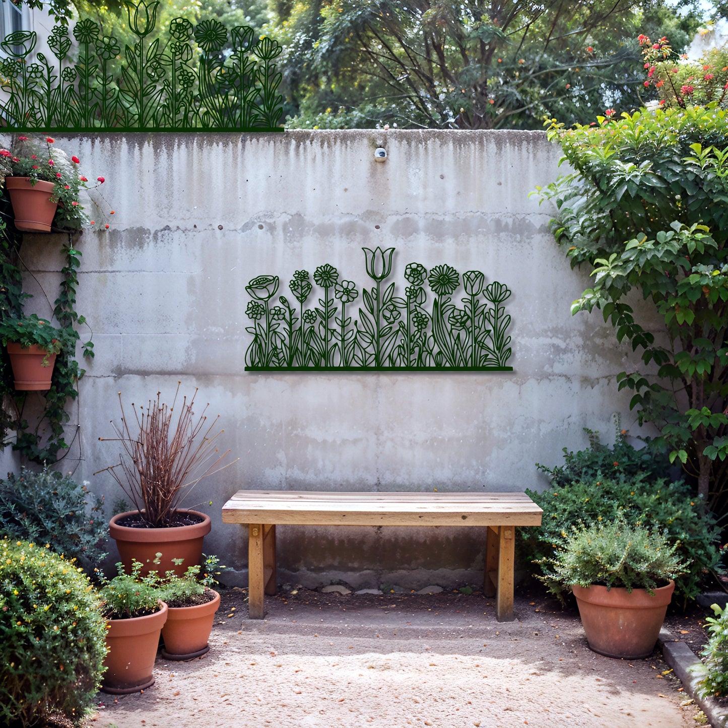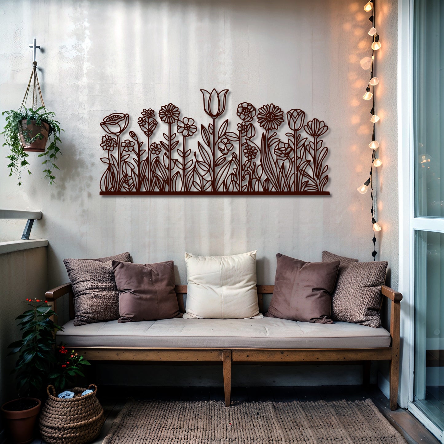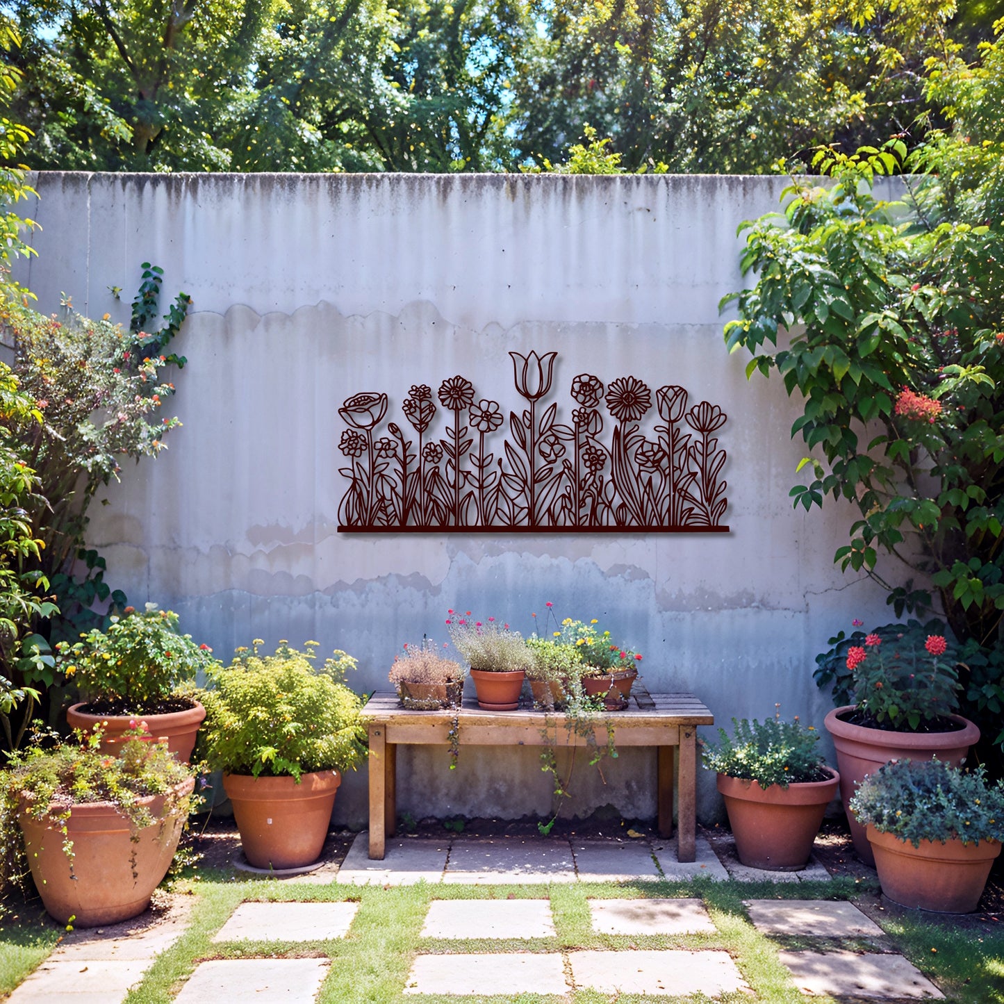 Bring the charm of a blooming meadow into your space with this Meadow-Inspired Floral Metal Wall Art. Featuring a stunning assortment of flowers and leaves, this handcrafted piece is perfect for enhancing the beauty of living rooms, entryways, patios, or garden walls. The rectangular design makes it an ideal choice for a unique and modern wall statement.