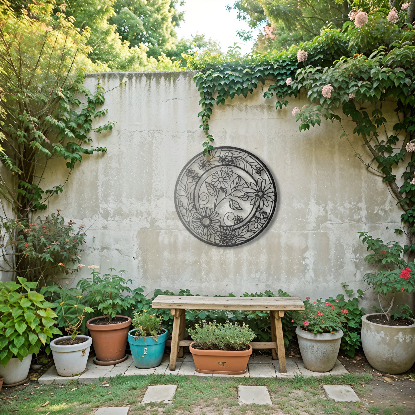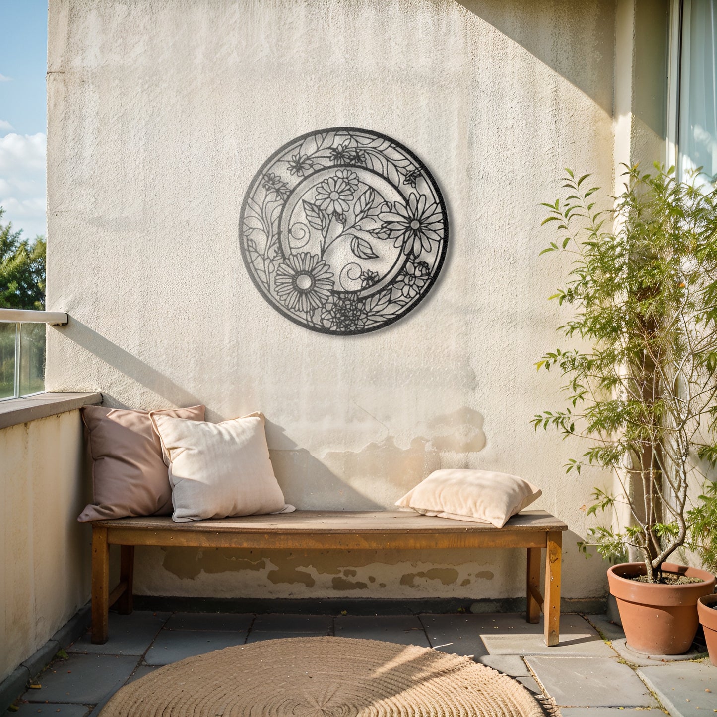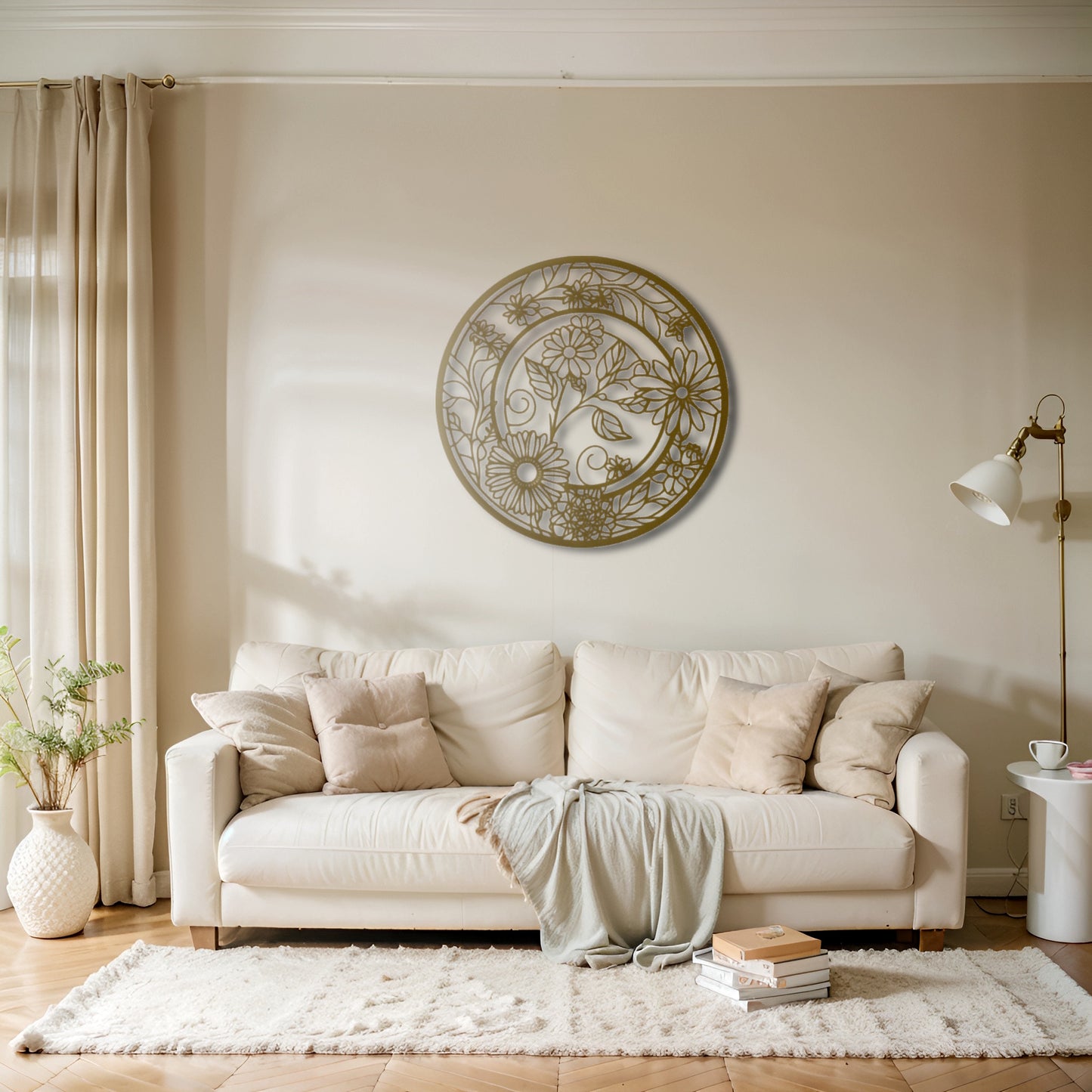Enhance your living space with this elegant round metal wall art featuring intricate floral patterns. Its timeless design makes it a perfect fit for both modern and boho-inspired décor.