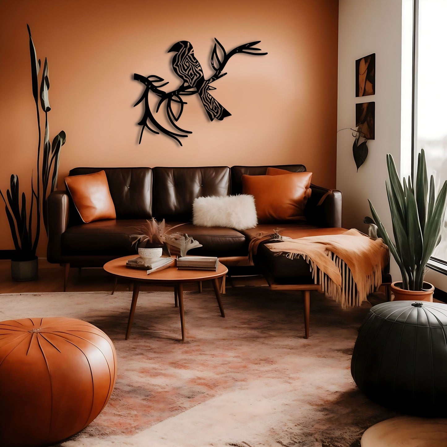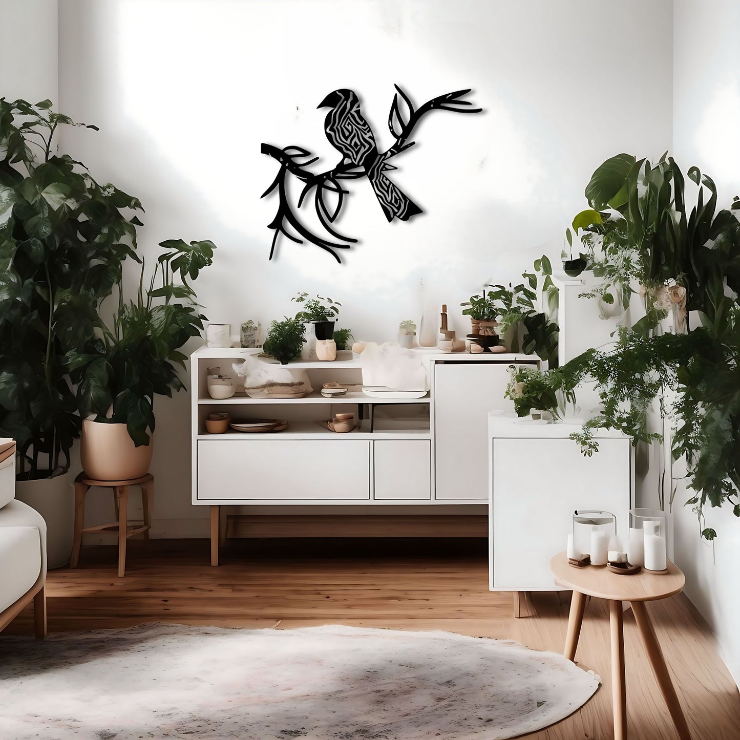 Bring a touch of global-inspired aesthetics into your home with our "Sakai Hōitsu Inspired Bohemian Wall Art - Bird on a Branch". This beautiful metal artwork is designed to mimic the style of Sakai Hōitsu, a Japanese artist from the Edo period, with a mix of tribal and hi-tech influences, as well as decorative lines inspired by Matisse.