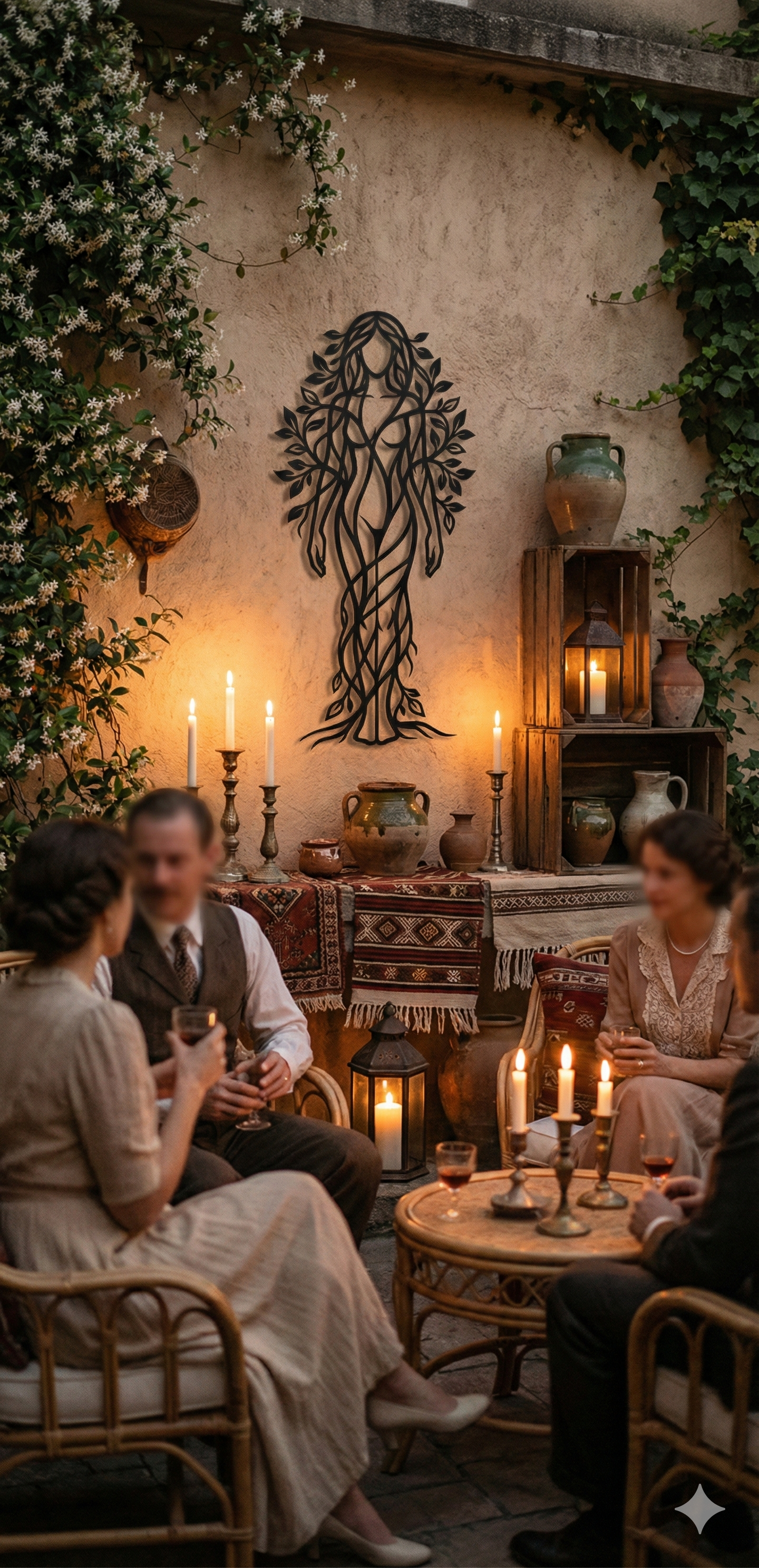 A forest is often imagined as a presence rather than a place—alive with memory, renewal, and the slow intelligence of seasons. This vine-formed figure turns that idea into a single emblem, where the human outline dissolves into branches and leaves, suggesting identity shaped by nature and strength drawn from the ground.