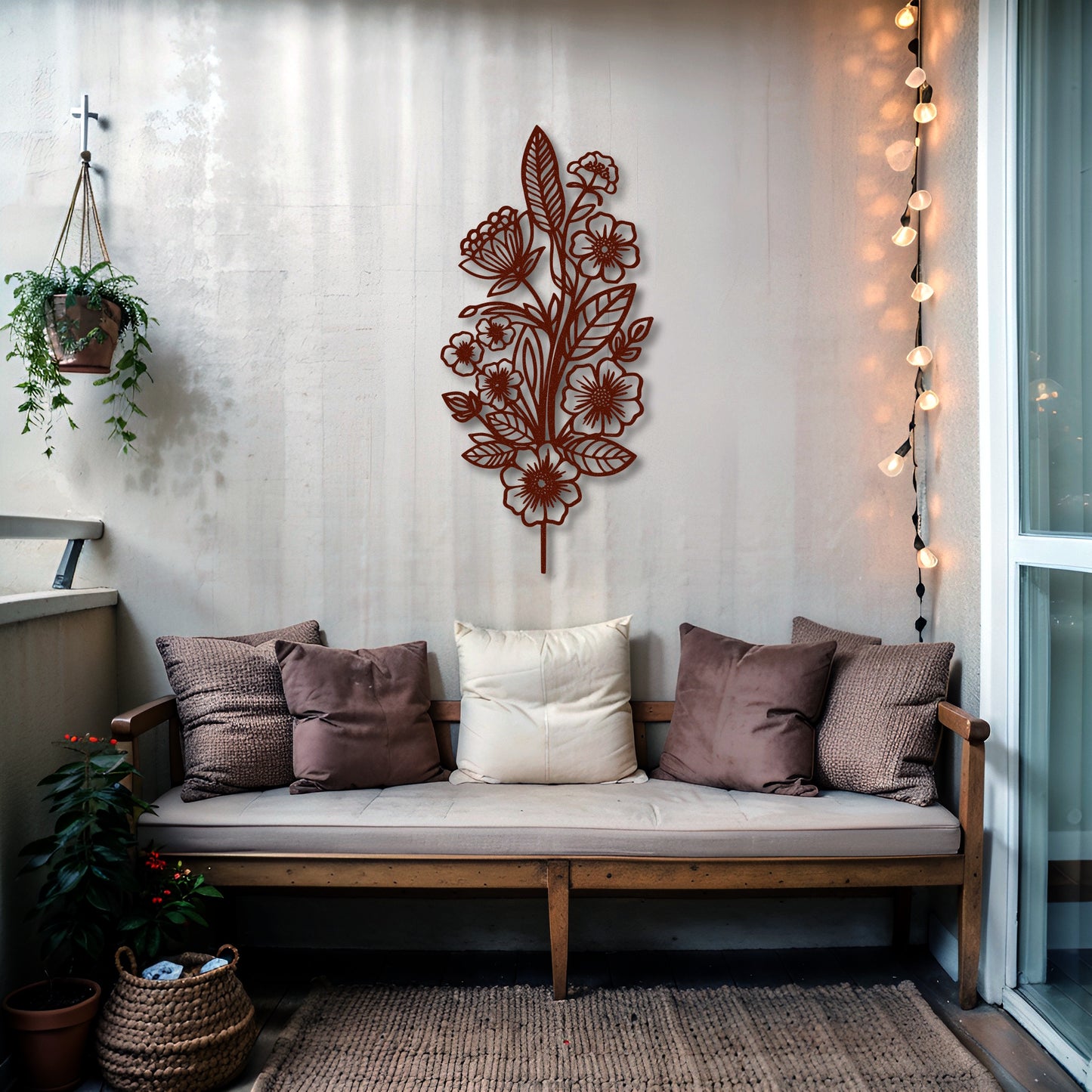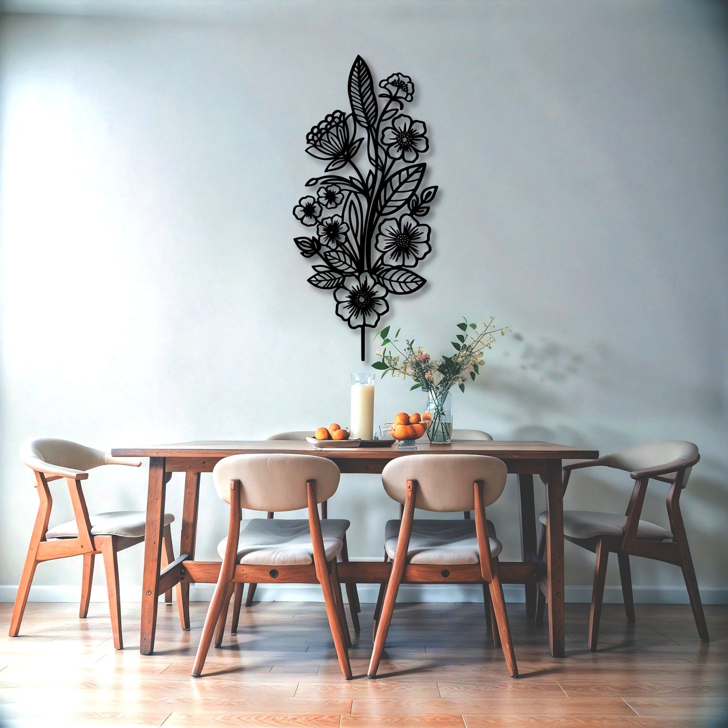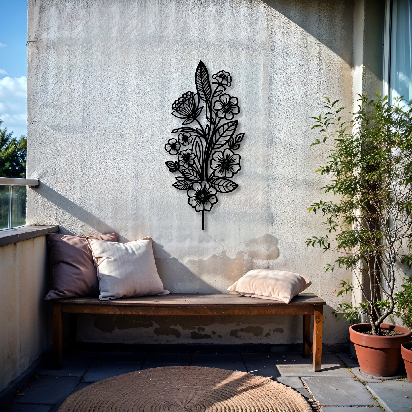 Add elegance to your space with this Tall Floral Metal Wall Art, featuring a sleek vertical design with blooming flowers and leaves. Perfect for filling narrow spaces in your home or enhancing outdoor walls, this handcrafted steel piece brings a touch of nature-inspired beauty to any environment.