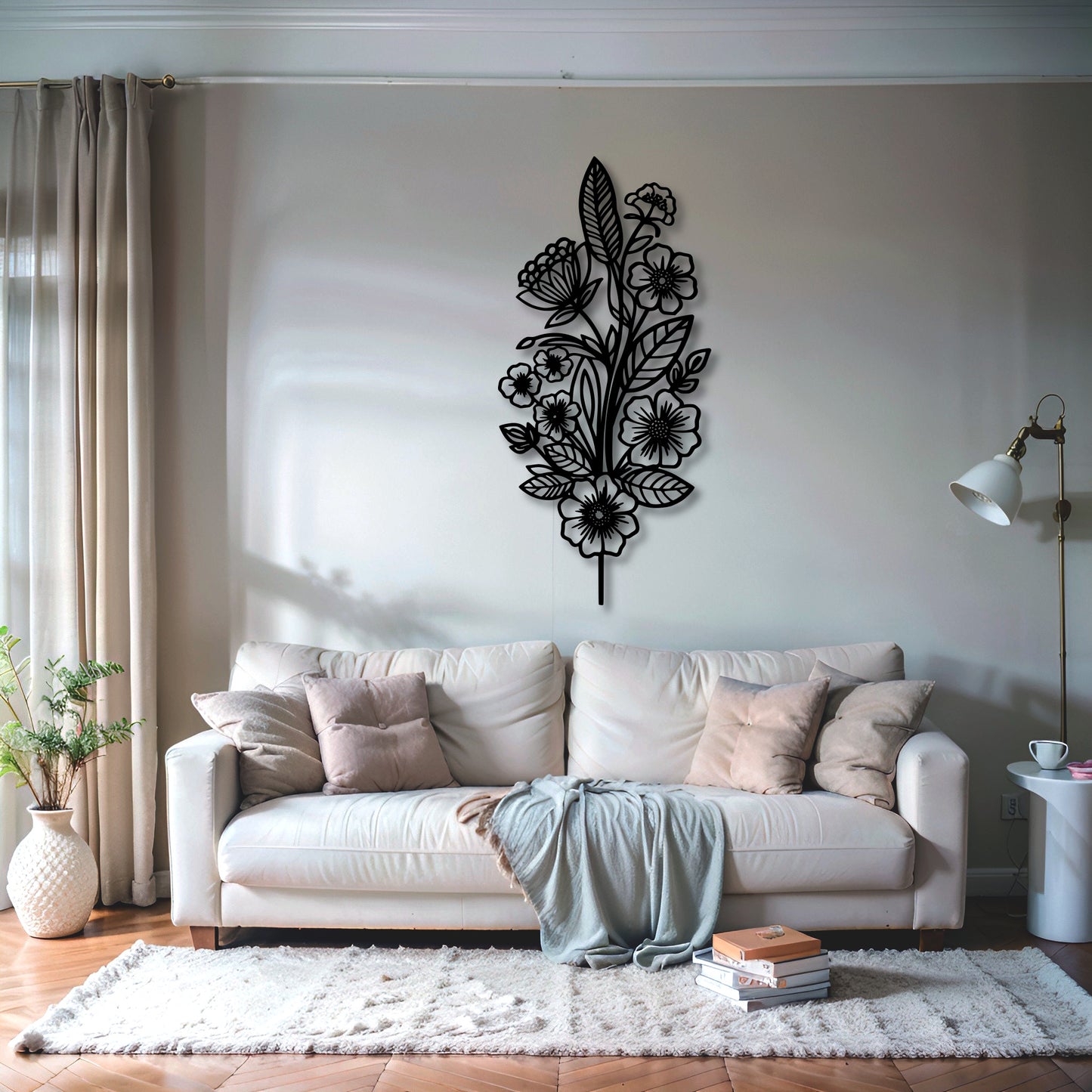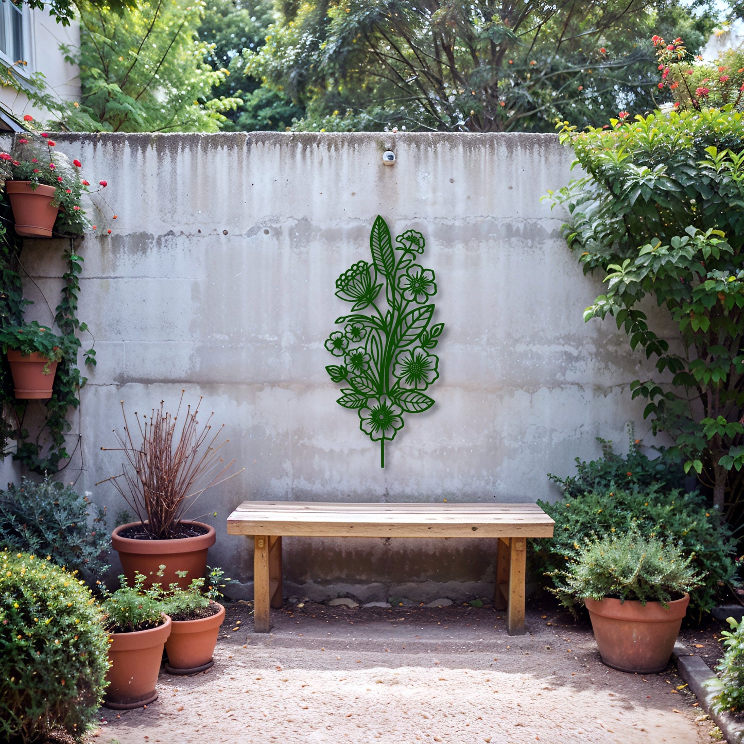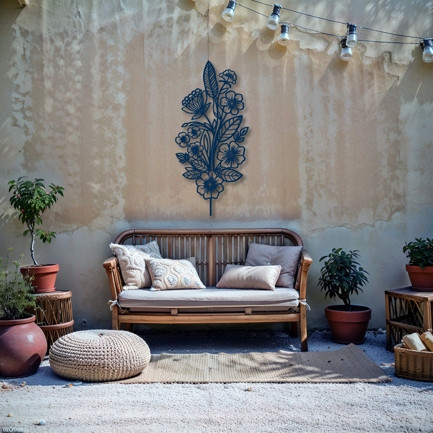 Add elegance to your space with this Tall Floral Metal Wall Art, featuring a sleek vertical design with blooming flowers and leaves. Perfect for filling narrow spaces in your home or enhancing outdoor walls, this handcrafted steel piece brings a touch of nature-inspired beauty to any environment.