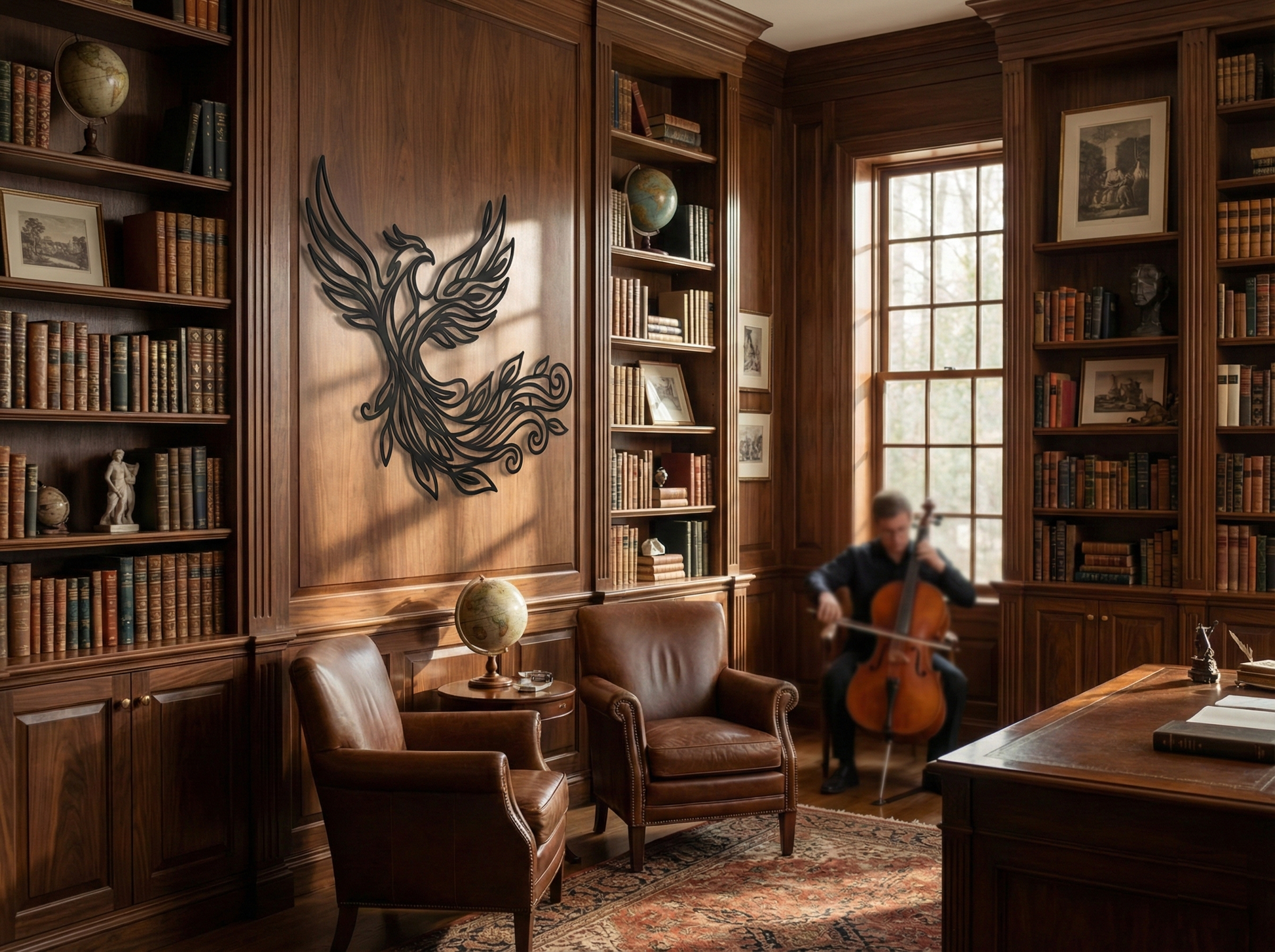 The phoenix has long been carried as a symbol of renewal—an image of strength that returns after collapse, and light that reappears after darkness. This soaring figure captures that mythic momentum through uplifted wings, a forward gaze, and a tail that unfurls like a living flame.